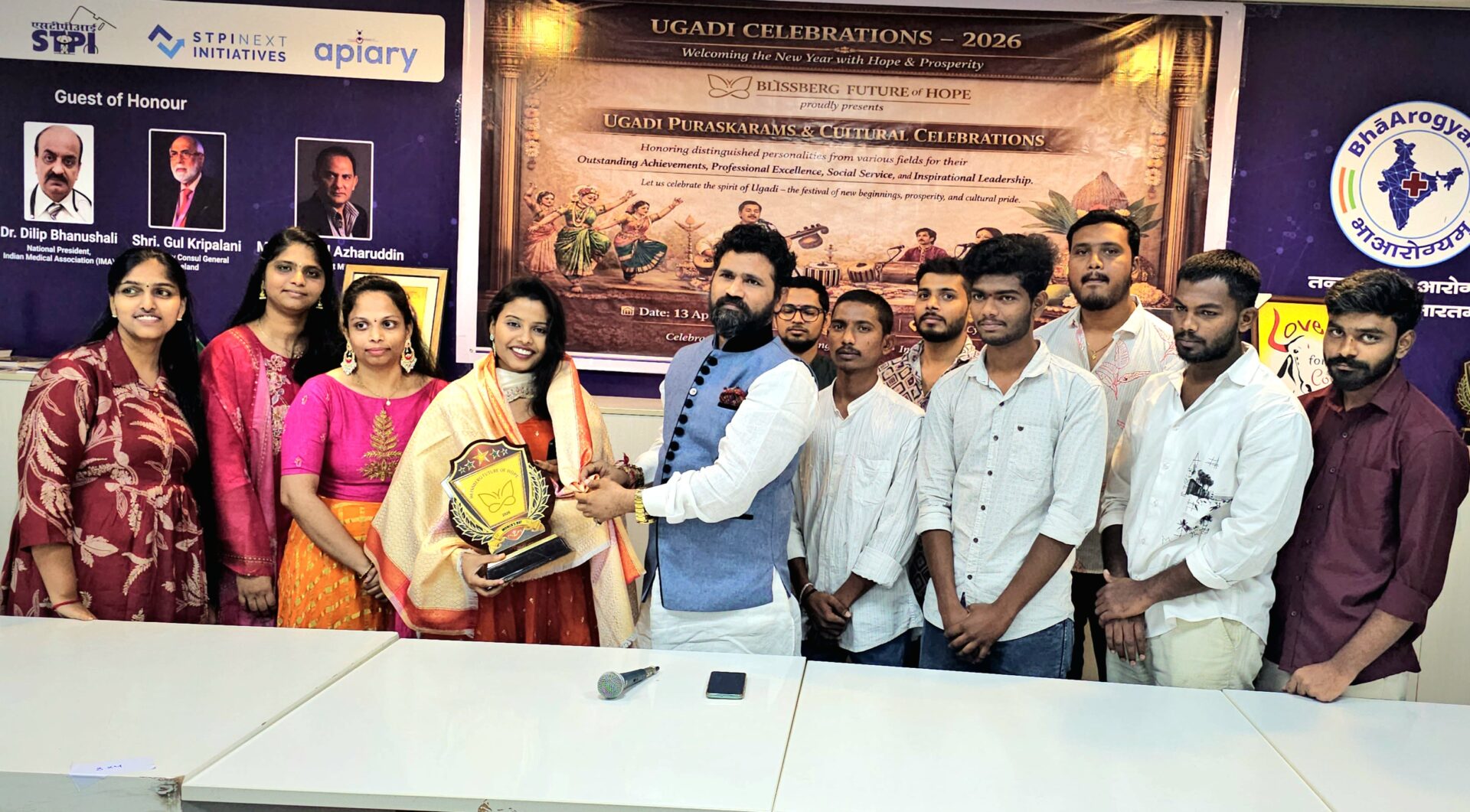 ప్రఖ్యాత అంతర్జాతీయ సంస్థ బ్లిస్బర్గ్ – ఫ్యూచర్ ఆఫ్ హోప్ ఆధ్వర్యంలో ఉగాది పురస్కారాల కార్యక్రమం ఘనంగా నిర్వహించారు. హైటెక్ సిటీ మాదాపూర్లోని సైబర్ గేట్ వేలో జరిగిన ఈ కార్యక్రమంలో వివిధ రంగాల్లో విశిష్ట సేవలు అందించిన ఐటీ నిపుణులు, ఆర్టిఫిషియల్ ఇంటెలిజెన్స్ నిపుణులు, సాఫ్ట్వేర్ ఉద్యోగులకు ఉగాది అవార్డులు అందజేశారు.